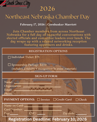 Join us for the 2026 Northeast Nebraska Chamber Day — a full-day event dedicated to strengthening connections between chamber members and state leaders. Held at the Cornhusker Marriott, this gathering provides a unique opportunity to engage in one-on-one conversations with elected officials and committee heads in a reserved meeting room setting.
